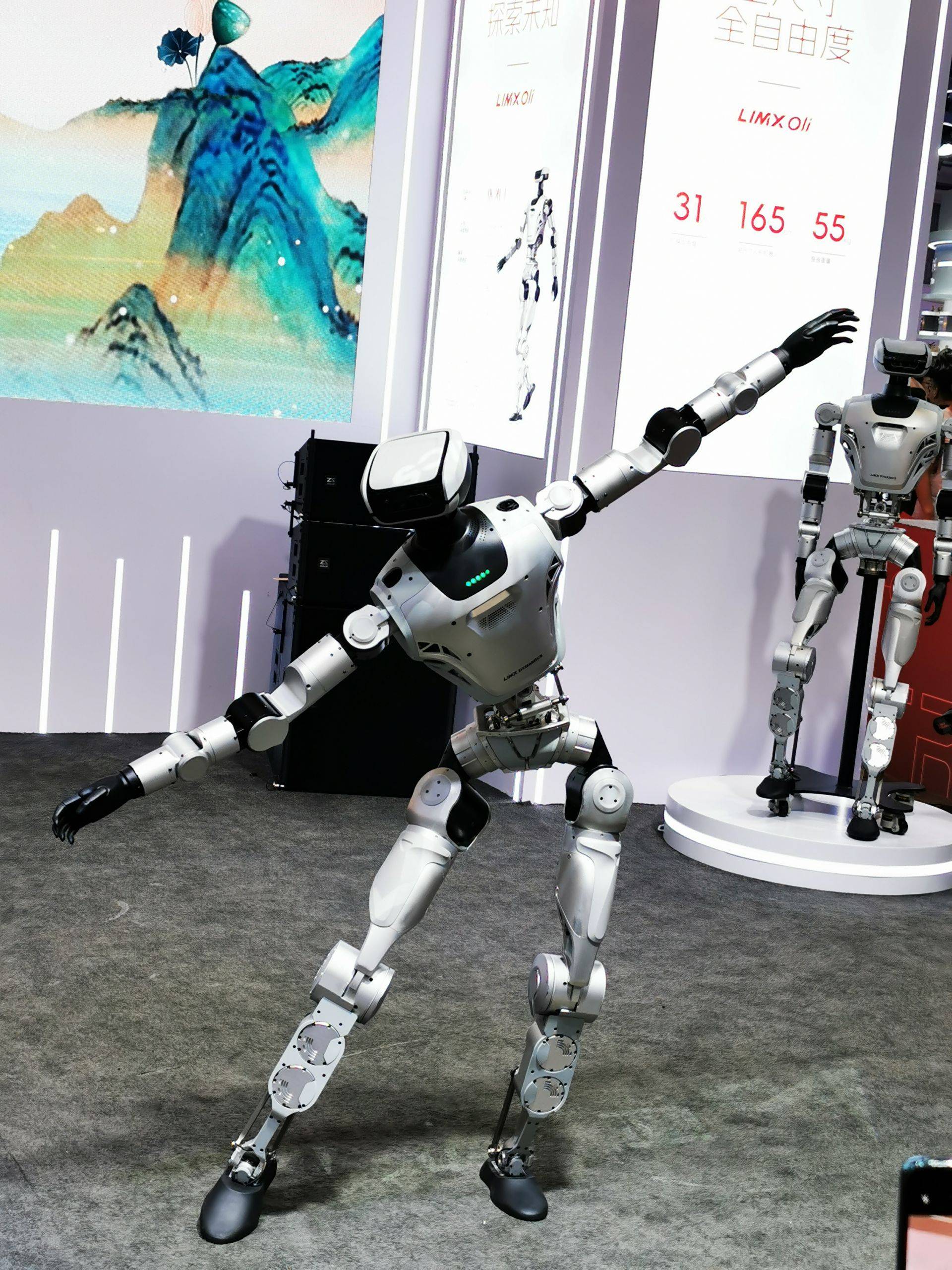 深圳逐际动力最新发布的全尺寸人形机器人LimX Oli正表演高动态舞蹈动作
