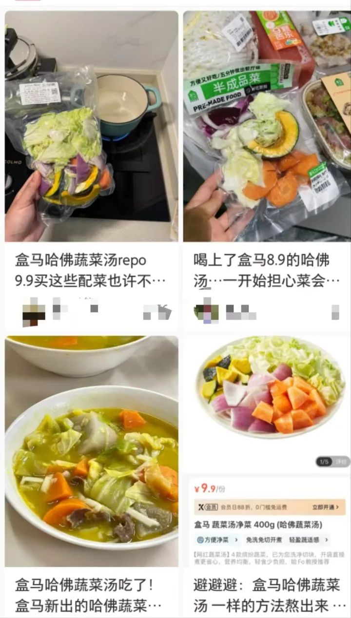 但即便如此,该产品仍在杭州地区占据盒马净菜销量榜第一名,甚至带动了不少网友在社交平台上分享各种“爆改蔬菜汤”帖子。