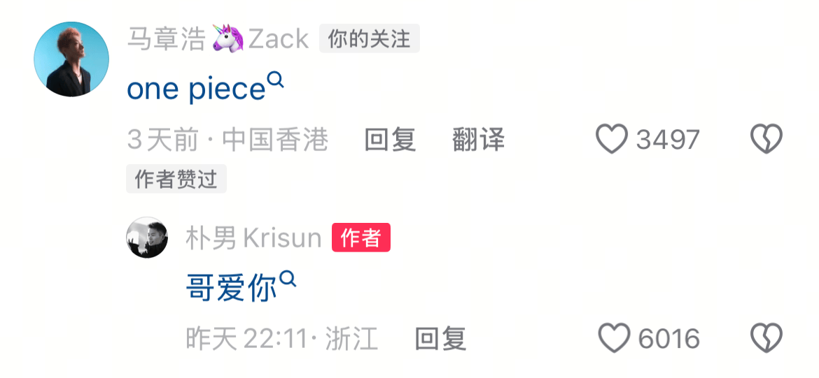 三天前,马章浩曾因为这一视频给朴男留言,而朴男直到昨天晚上才回复:哥爱你。