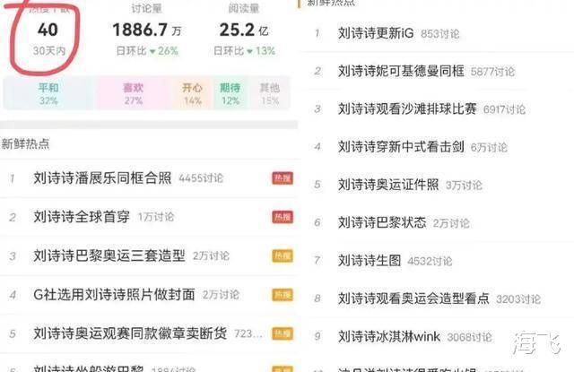 那时候,刘诗诗相关的话题一个接一个地频繁登上热搜呢。就在短短几天的时间里,她居然登上了数十个热搜榜,一下子就变成了奥运会期间网络世界里特别热门的话题人物啦。