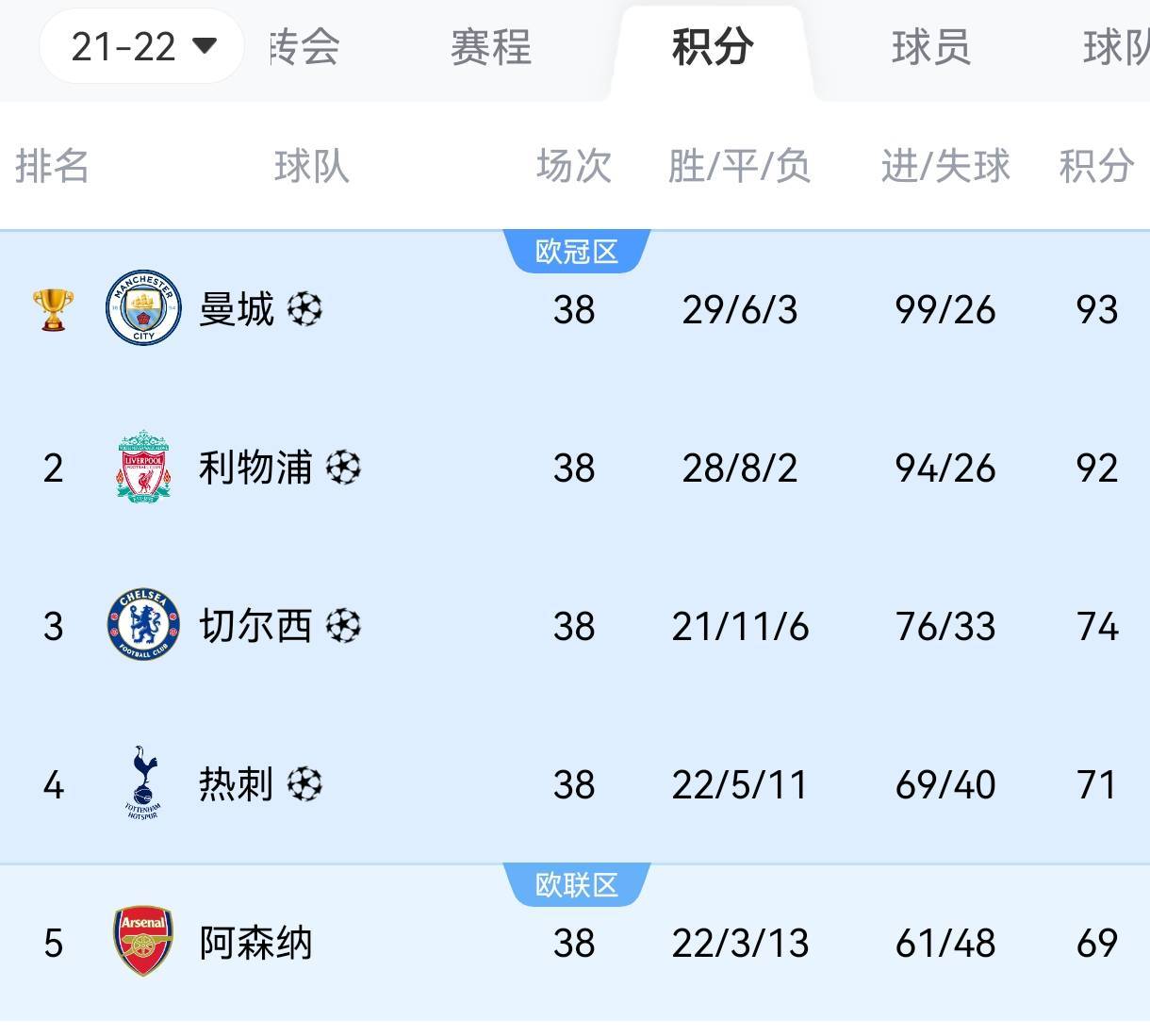 而此前在克洛普治下,利物浦有两次拿到90+分的高分亚军↓