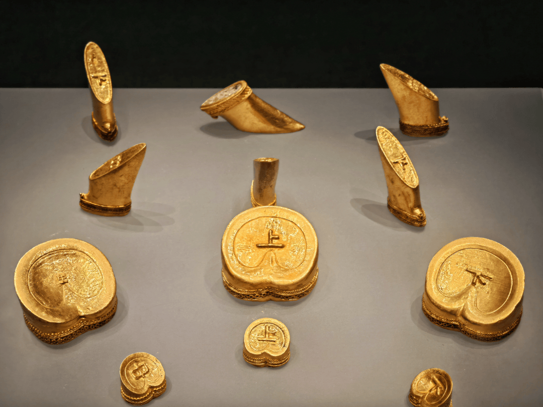 江西南昌海昏侯国遗址博物馆里展示的马蹄金。(图/图虫创意)