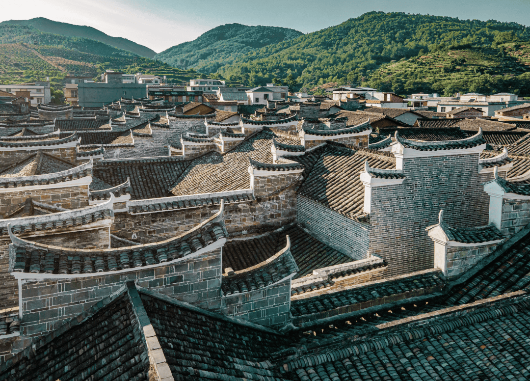赣派建筑的马头墙不大面积抹白,以突出砖的纹理。图为赣州瑞金市一处村落。(图/图虫创意)
