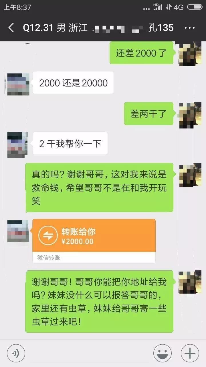 @FM北纬45度:我遇到过好几个茶叶女,应该跟这些虫草女是一类人。真想不明白这些汇钱的男人,都不舍得汇钱给爸妈,却汇钱给这些骗子。建议警察叔叔把他们关号子里别出来祸害人了。