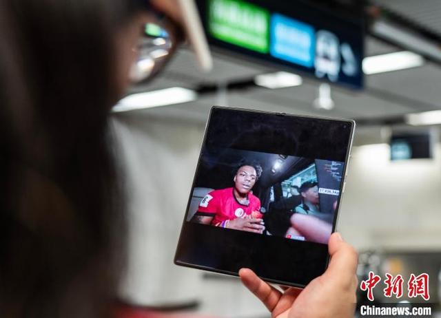 4月4日,美国网红IShowSpeed(中文昵称为“甲亢哥”)开启香港行,到访时代广场、香港海洋公园等地,引起香港市民关注。图为一位香港市民通过手机关注“甲亢哥”香港行直播。 中新社记者 侯宇 摄