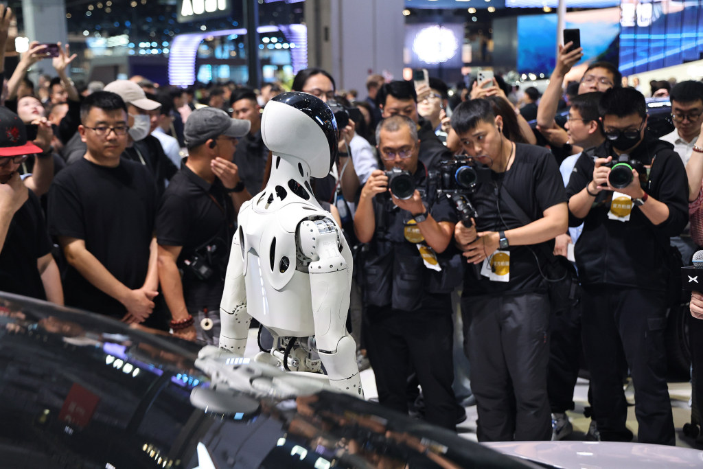 4月23日,上海车展,小鹏汽车董事长何小鹏携人形机器人IRON亮相。“十年前,新能源汽车还是车展上的新鲜事物,而现在已经成了绝对主力。下一个十年,我想人形机器人也会越来越多地现身车展。”何小鹏表示。