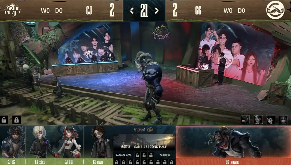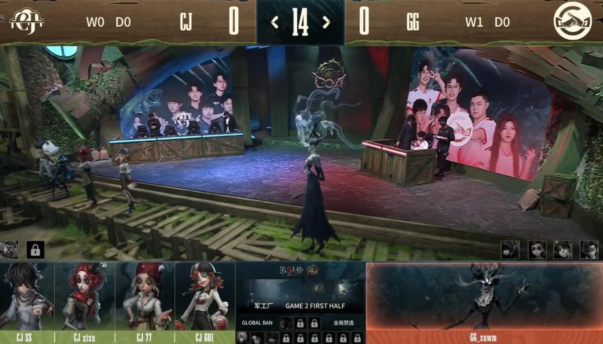 CJ的求生者选择了调酒师、哭泣小丑、拉拉队员、病患(BAN“喧嚣”);成都GG的监管者xawm选择了时空之影。(BAN先知、空军、勘探员、“骑士”)