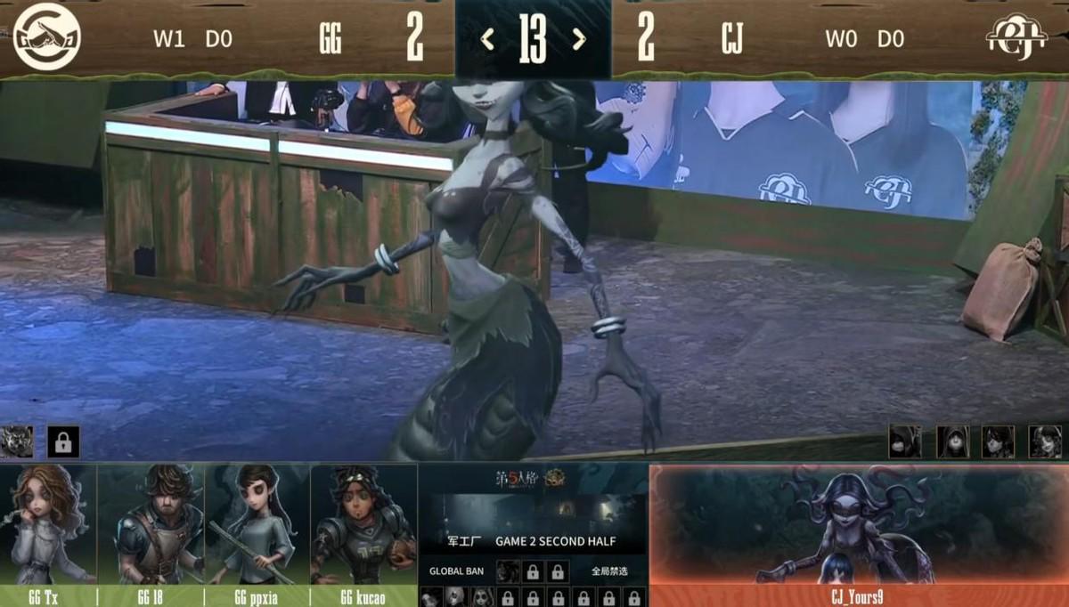 成都GG的求生者选择了“心理学家”、飞行家、古董商、前锋(BAN“喧嚣”);CJ的监管者Yours9选择了梦之女巫。(BAN先知、佣兵、“囚徒”、拉拉队员)