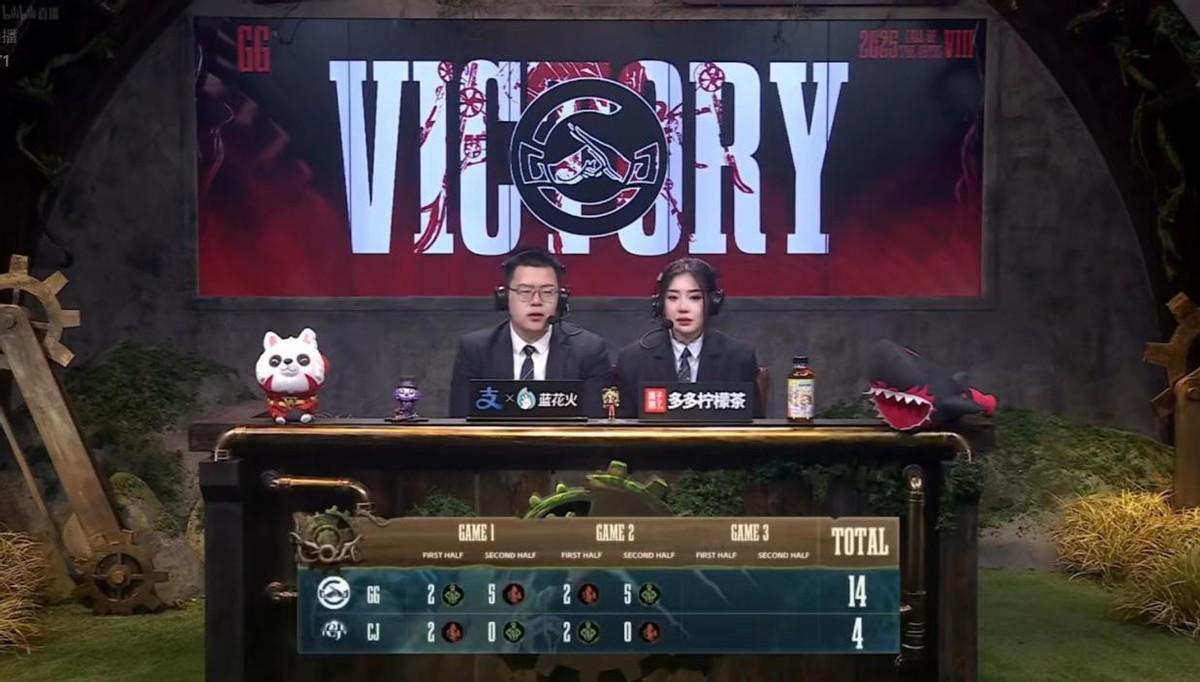 最终,成都GG以2胜0平0负(14:4)的比分击败CJ,获得本场比赛的胜利。