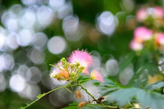 一年一度,接近仲夏时节,合欢枝上香芳翠,艳艳的红绒球又在翠绿荫中团团簇簇。