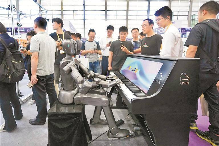 钢琴机器人弹奏乐曲。深圳晚报记者 严文婷 摄
