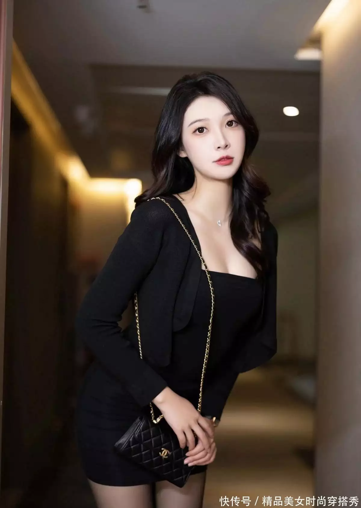在时尚的世界里,穿搭是一门艺术,也是个人品味与个性的展现。今天,我们就来探讨一下一位美女如何巧妙地运用黑色紧身吊带裙、黑色长袖披肩、黑色丝袜、黑色高跟鞋以及金属链条的黑色小包包,打造出既性感又优雅的时尚穿搭。