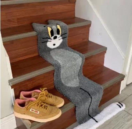 2.我的天,网友的这个地毯我觉得太有喜感了,这不是汤姆经常被整的样子吗,而且放到楼梯上还显得非常立体,哈哈哈。