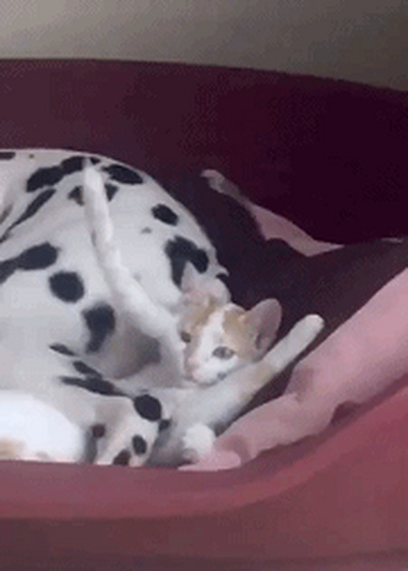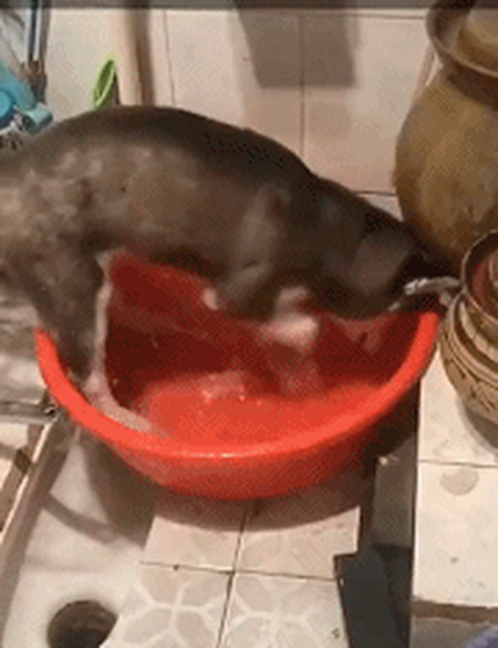 9.救命啊,非礼了,哈哈哈,这狗子的胆也太小了,被鱼吓成这样。