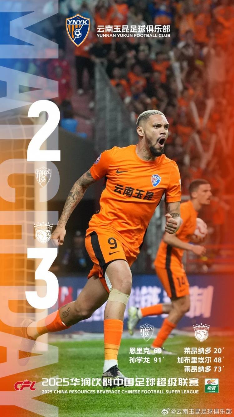 2025赛季中超联赛第9轮,主场作战的云南玉昆面对卫冕冠军上海海港,整场比赛不畏强敌、敢打敢拼,在场面上占据优势的情况下,非常遗憾地以2比3不敌对手。