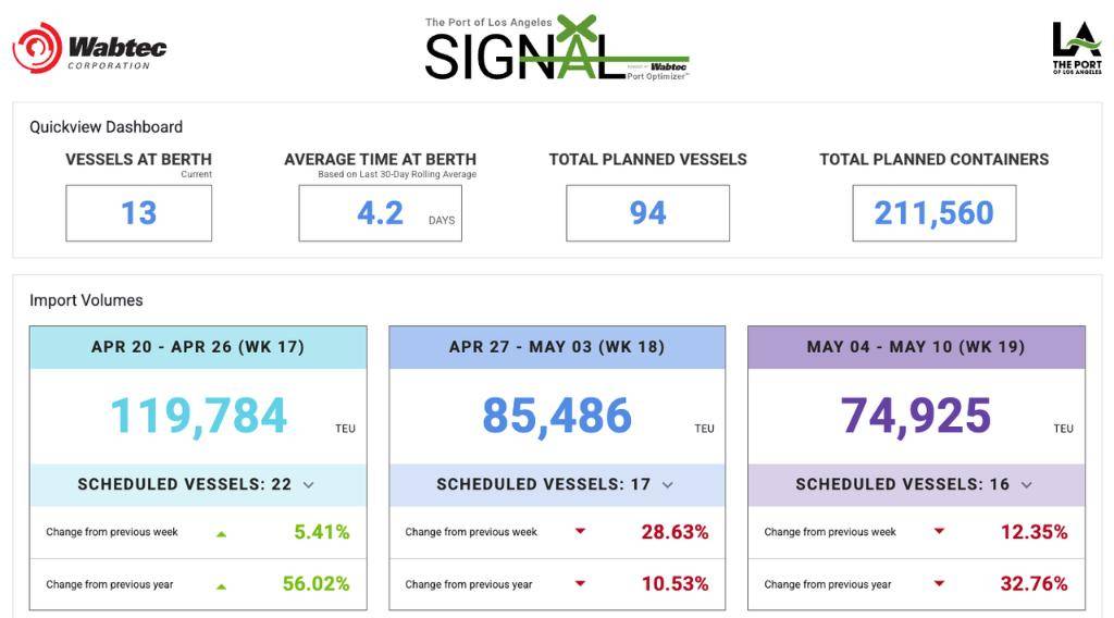 美东时间周三,船运追踪系统Port Optimizer最新数据显示,从本周日开始, 洛杉矶港的进口量将急剧下降。洛杉矶港是美国最大的港口,也是西半球最大的集装箱枢纽。