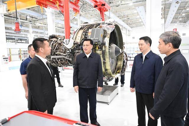 袁家军在24日的调研中前往方大海航航空发动机维修基地,听取项目建设情况介绍,了解发动机维修流程、技术工艺和市场前景,并调研了整机拆卸维修车间。