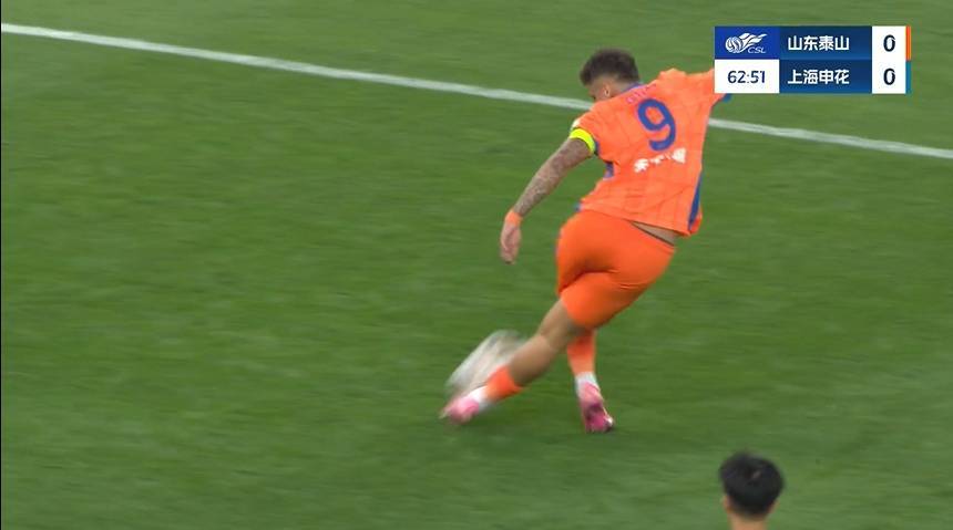 比赛第63分钟,克雷桑边路连过三人插花脚传中,谢文能头球冲顶偏出,场上比分泰山0-0申花。