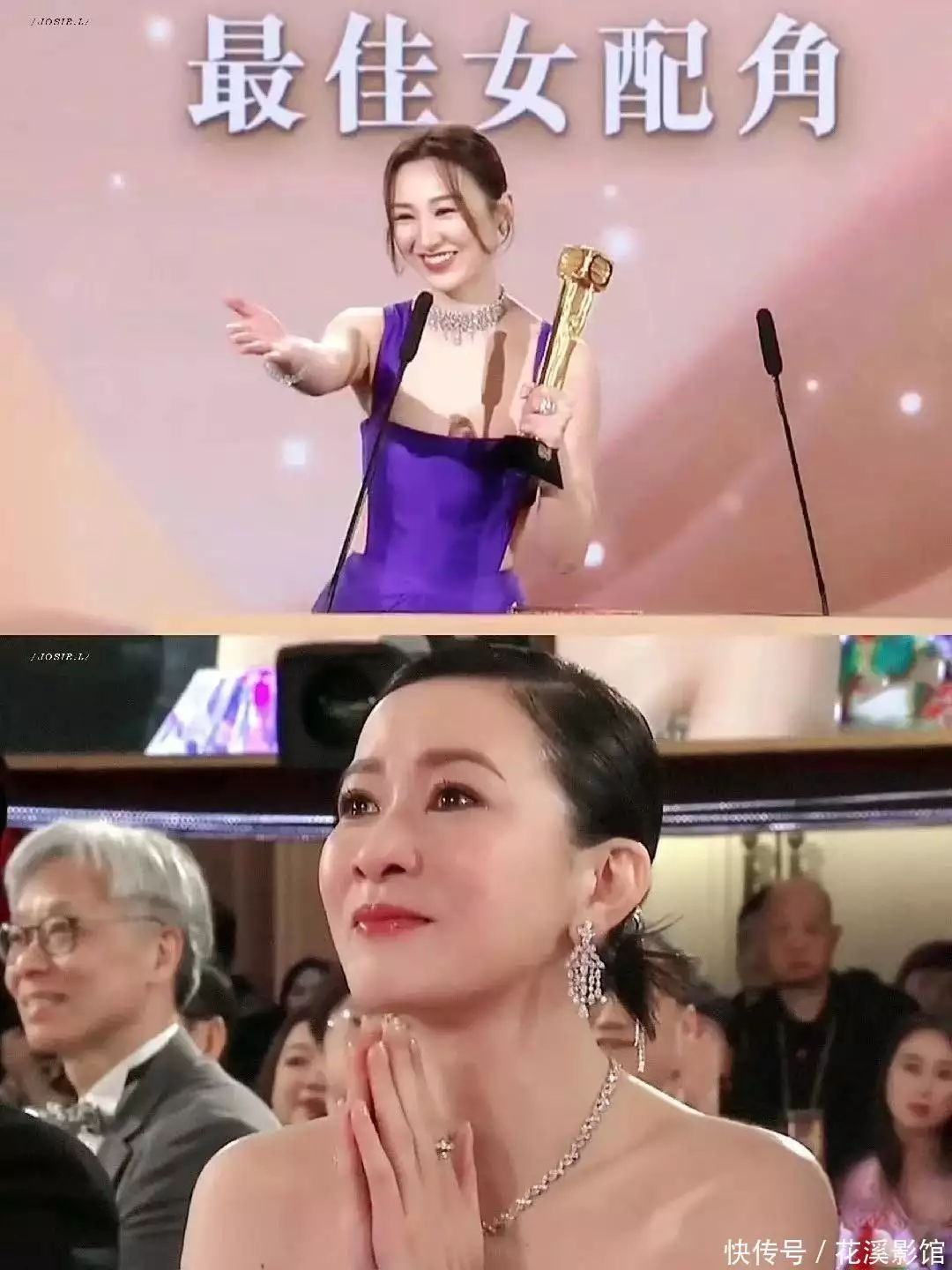 同样是凭借电视剧《新闻女王》真正获得观众认可的女演员高海宁获得最佳女配角的时候,不仅仅她落泪了,同剧中的佘诗曼也为她高兴。从眼神里可以看得出她们是彼此支持和欣赏的!
