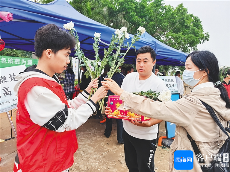 海口颜春岭安乐园内,志愿者为前来扫墓的市民发放鲜花。 海南日报全媒体记者 黄婷 摄鲜花祭扫