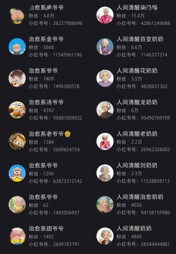 而最近网上新火了一批打着“治愈系X奶奶”标签的卡通风账号,虽然远不及“人间清醒奶奶”时代的流量,粉丝量级也掉到了三五万,但这类账号的数量是呈指数级别上涨的。