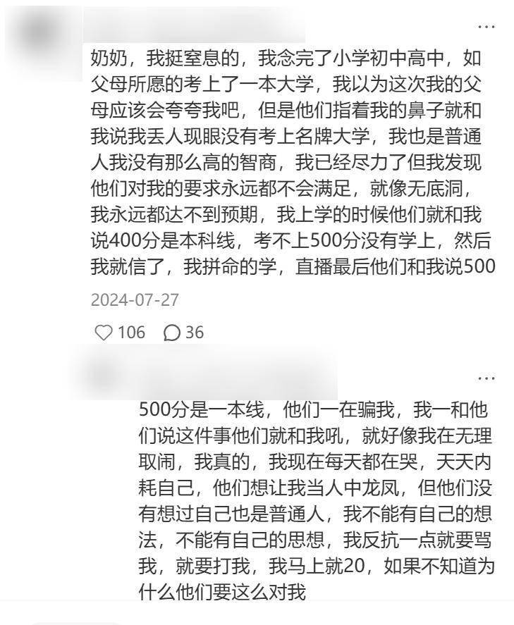 类似的倾诉还有很多。“父母从小到大对我的要求太高;婆婆总说我太强势,但朋友都说我性格太软;有人说我不会讲话......”下滑是清一色的好评,“奶奶的话治愈了我一个下午!”“说得太有道理了!”
