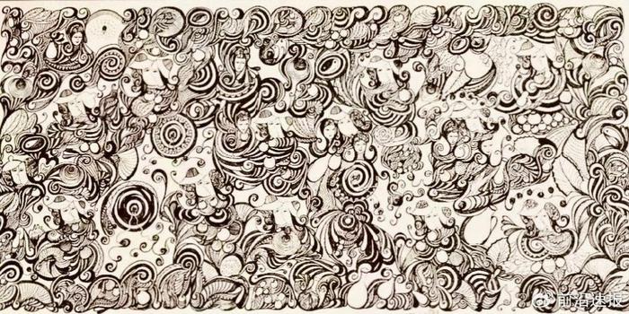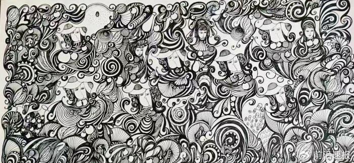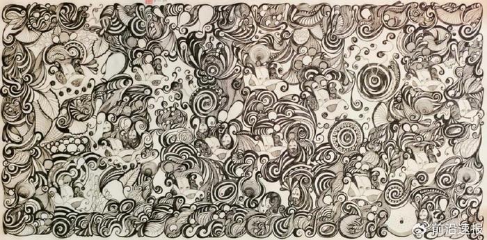 走进马秀岩的画室,仿佛踏入微观的宇宙博物馆。墙上悬挂的作品,如量子纠缠般向虚空延伸,用层叠的墨迹演绎多维空间的哲学想象……这些耗时数月乃至数年的作品,每一笔都是“无心插柳”的产物。“我作画时没有构思,甚至不知道下一笔该落在哪里。”马秀岩这样描述创作状态。