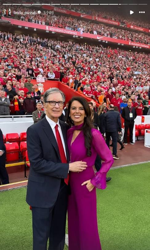 赛后利物浦老板娘琳达更新社媒,与亨利在安菲尔德合影。
