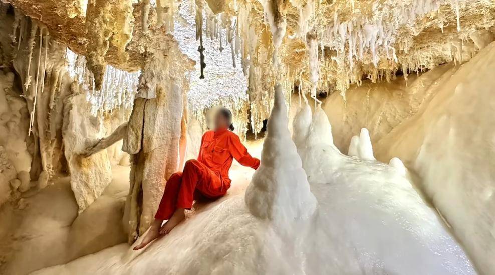 当事人陈女士称事发4月7日,她所在的团队进入晶花池区域前已脱鞋行走。陈女士告诉记者:“是我本人站在上面拍照,我们是(道真县)招商引资的客商,我们是政府这边招商过去做开发前采的,我已经是第4次进去了。我们是从一个黑暗的通道口穿越到那一段,在没有抵达那一段之前,我们所有人是脱了鞋进去的。进入到洞穴里面,它都有一定的破坏程度所在。”