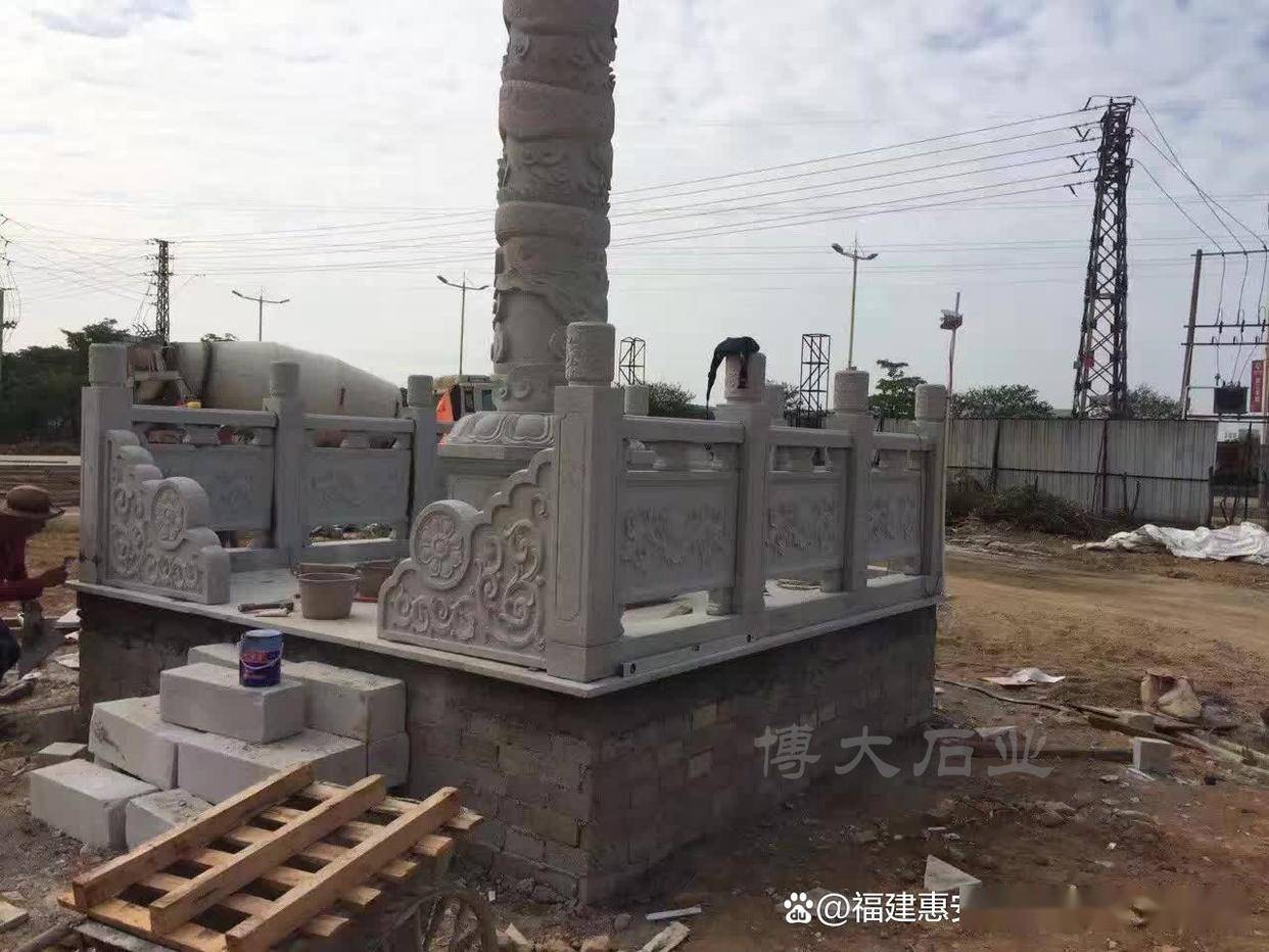 石雕龙柱通常由坚硬的石材雕刻而成,材质上以大理石、花岗岩等高硬度石料为主,这些材料不仅能够承受风雨侵蚀,还能展现出雕刻师精湛的技艺。在外形设计上,龙柱通常由粗壮的柱身和威猛的龙首构成,龙体环绕或盘旋在柱身上,显得威武雄壮。柱身上雕刻着精美的云纹、浪花、雷电等图案,增加了装饰的层次感和动感,使整个雕刻更加生动、富有张力。