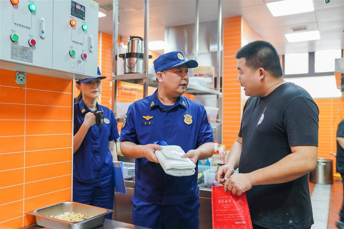 作为社区里最具烟火气的地方,幸福食堂的后厨却是个需要重点盯防的安全区域。为此,食堂不仅在灶台旁配备了灭火器、灭火毯等全套消防器材,更有消防员定期进行消防巡查。根据食堂内老人集中、设备复杂、用火用电密集等特点,消防员指导工作人员调整油污清洁频率、规划应急疏散路线、学习自检自查消防设施设备,切实提高员工消防安全意识。