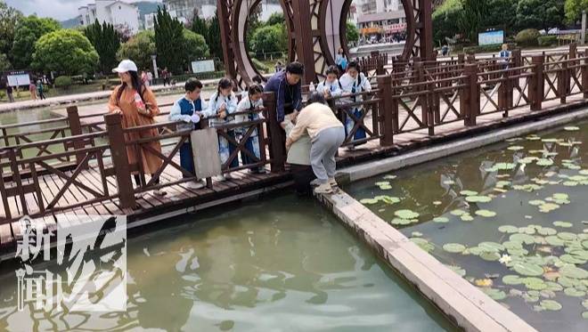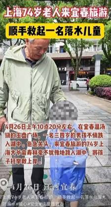 据现场目击者宜春学院徐天兰老师回忆,当时她正带着孩子在玉盘广场拍摄明月山公益宣传片,突然发现湖边有人围观。只见一位老大爷站在湖里费劲地想要爬上岸,岸上站着一位浑身湿透的小男孩。