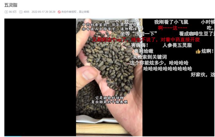 图为:五灵脂图源:B站UP主@医者正心