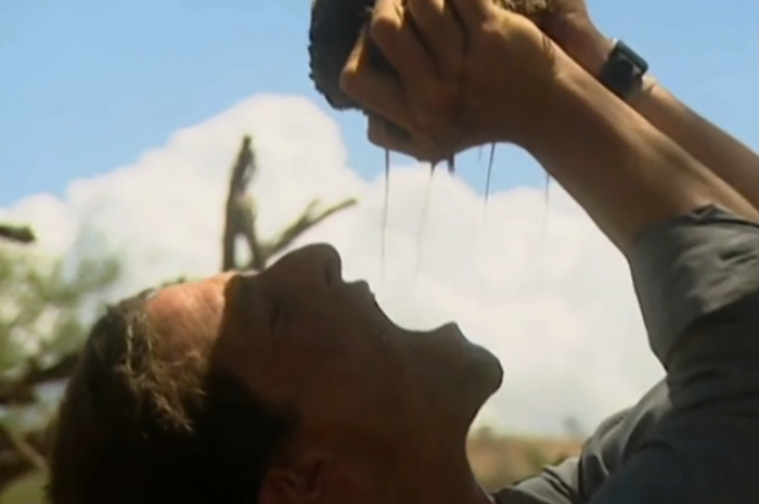 贝爷有一幕经典“吃播”画面,就是挤出新鲜象粪里的汁水,然后喝下去。(呕~yue~容小Yoo吐一会儿。)但是,他是贝爷啊他!