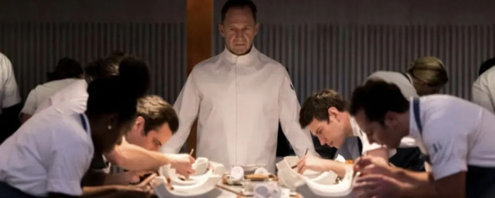 (该电影讲述了一位厨师用奇葩的天价盛宴,把有钱人骗到孤岛上杀害)