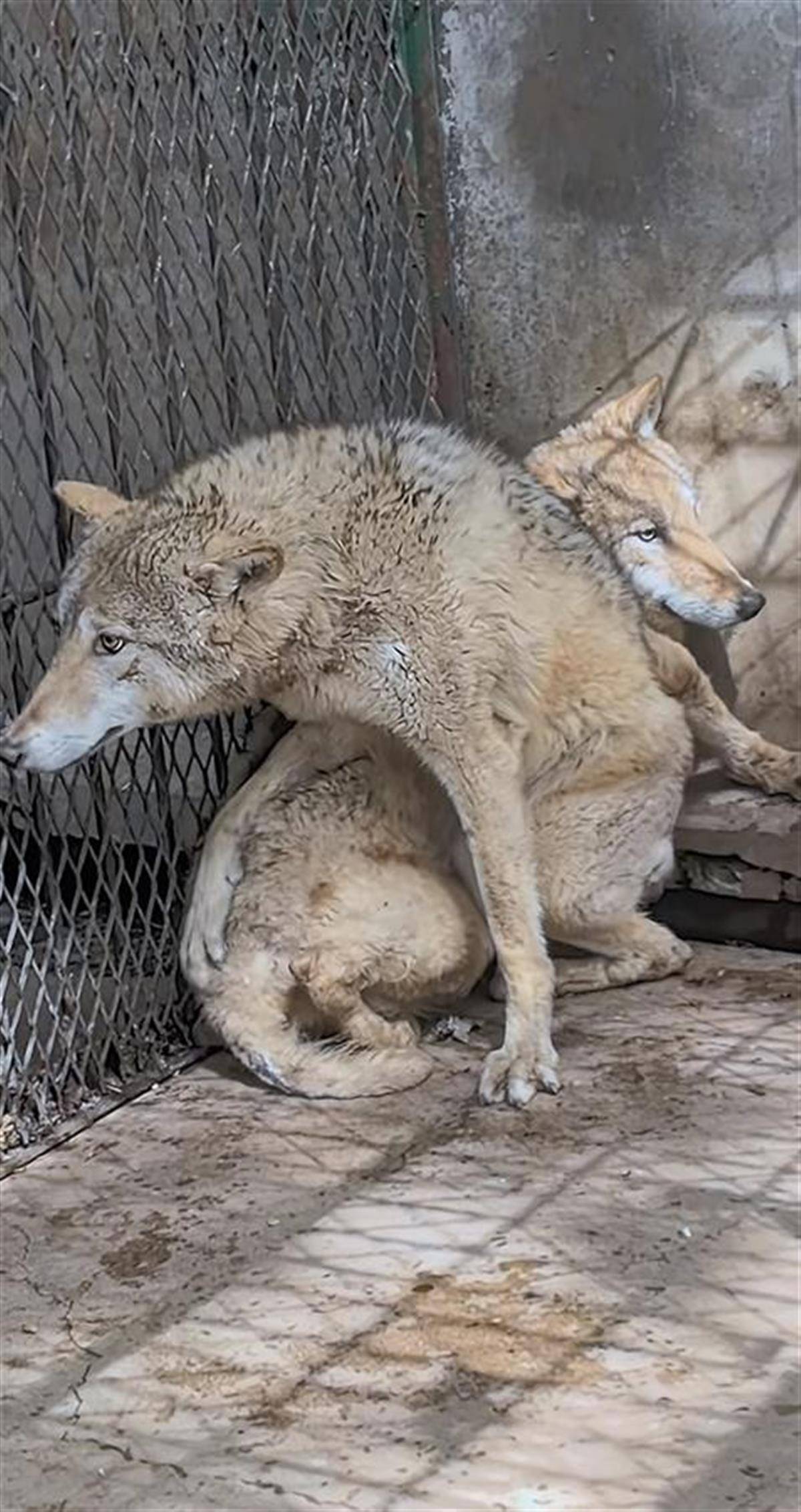 狼蜷缩在角落发抖(图源:娜娜姐个人账号)