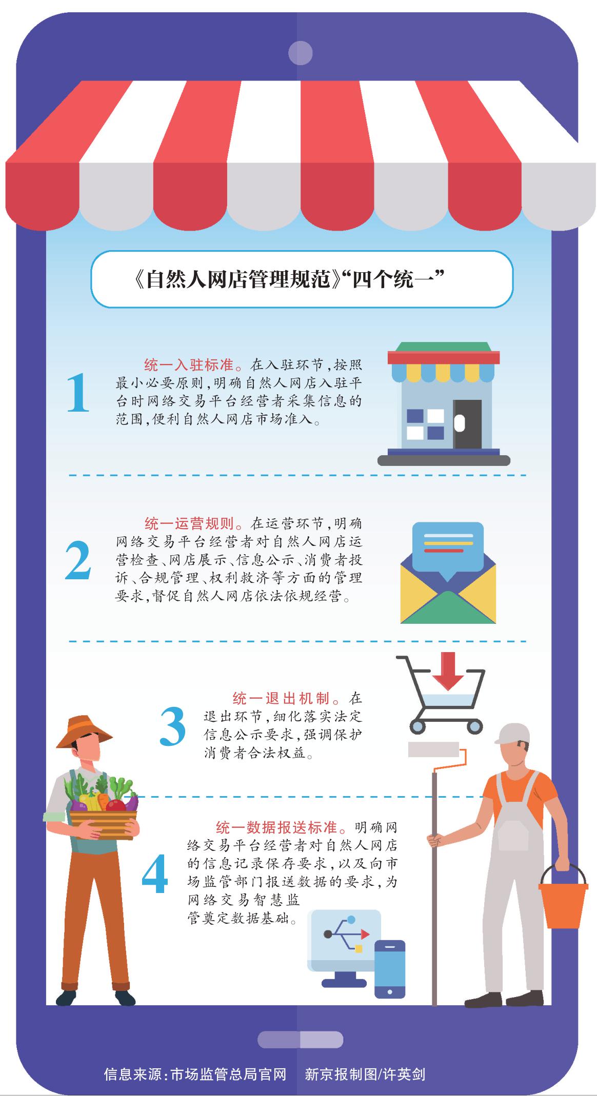 “海量的自然人网店既是活跃平台经济的重要主体,也是培育新生经营主体的重要来源,在稳增长、促消费、保就业、惠民生等方面发挥着重要作用。”上述负责人表示,各网络交易平台对自然人网店管理的标准不统一,自然人网店良莠不齐、鱼龙混杂,是侵权假冒、虚假宣传等问题的重灾区。这些问题既不利于自然人网店进一步发展壮大,也不利于消费者权益保护,影响平台经济高质量发展。