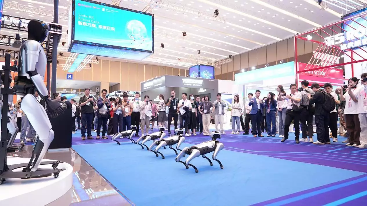 展会现场,中国移动云以战略合作伙伴身份宣布,与魔法原子达成深度合作,要将人形机器人“小麦”纳入边缘云计算网络,并决定在会议服务、智能办公等场景部署四足机器人,通过人形机器人和四足机器人的智能交互功能和自动化服务,打造更高效的办公环境。