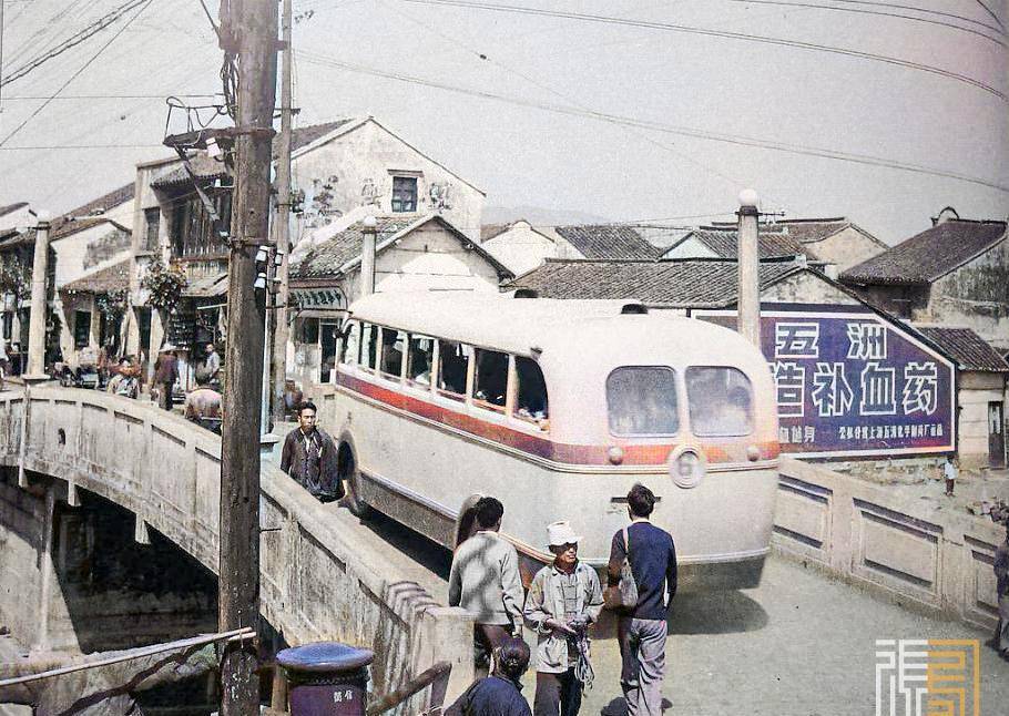 1950年,江苏无锡,一辆公交车正缓缓驶过一座古桥,人来车往,一片繁忙。