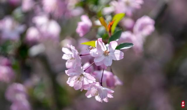 春意正浓,漫步于崇明街头、乡间、公园,海棠花连绵成片,形成烂漫的春色一景,市民在“家门口”尽享诗意春光。