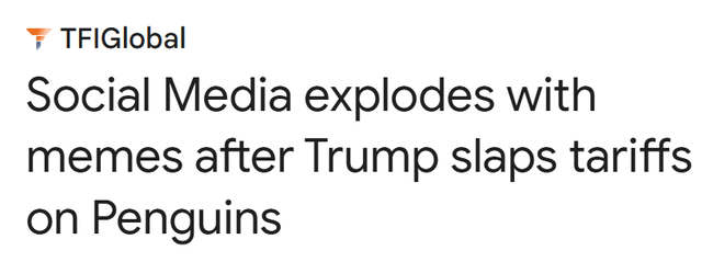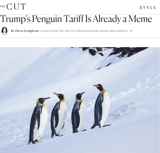 新闻标题翻译:特朗普对企鹅征税后,社交媒体上“爆”出各种梗