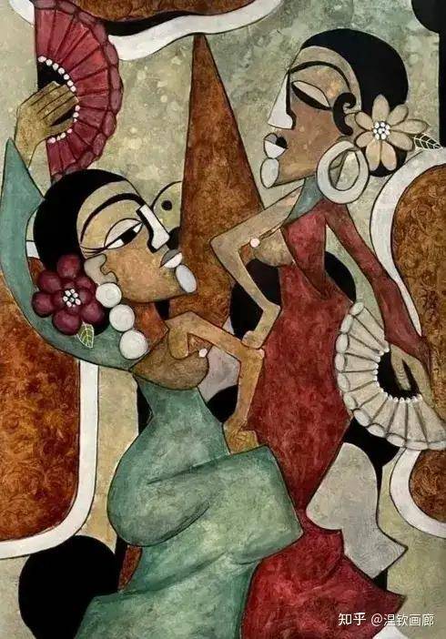 她的作品中,线条简洁而有力,描绘的女性形象多样而生动。她的画作充满了热情与大胆,浪漫而柔和,展现了她与绘画之间的深厚情感。她相信,每个女人都有自己独特的美丽和力量,无论她们的生活状况、肤色、地域或职业如何。
