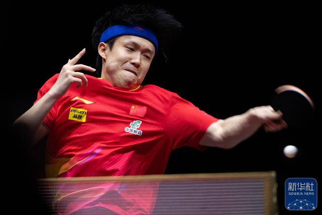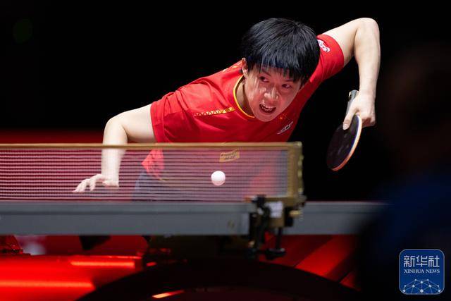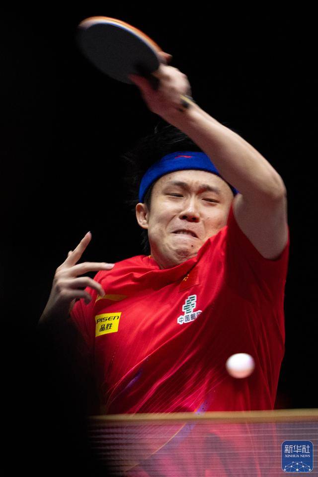 ↑ 王楚钦在比赛中回球。新华社记者 贺长山 摄