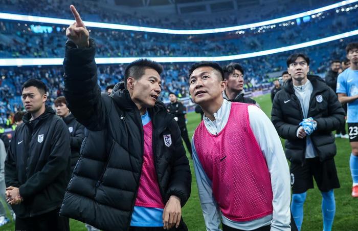 赛后谢场,于汉超感谢支持自己的足球城球迷。于汉超幼时就读于被誉为中国足球黄埔军校的大连东北路小学,之后加入著名的大连毅腾青训体系,师从著名青训教练程显飞指导。因为当时的实德集团瞎霍霍,于汉超与一帮小伙伴被辽足打包买走,2012年底,于汉超回到家乡加盟大连阿尔滨,但在2014年联赛中期,于汉超被中超头号土豪广州恒大(晚池注:因为母公司骗钱多年已经恶贯满盈,树倒猢狲散)挖走,再次离开大连。
