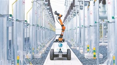 图为近日在安徽省滁州市南谯区220千伏变电站内,一台搭载DeepSeek大模型的智能机器人正在自主巡检站内设备。