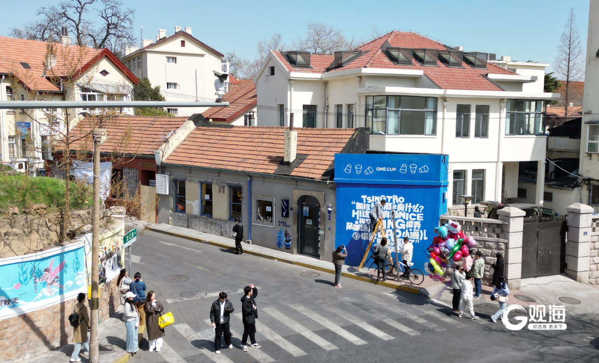 曾经,ONE CUP饮品店是时尚达人们的专属背景。这里距离青岛大学路网红墙很近,是龙江路“漫画街”的入口之一,近几年成为新晋青岛地标打卡墙。克莱因蓝色的巨大“青岛”文字logo是这家店的标志,配色清新又带着高级感,成为来青旅游的打卡地标。如很多文旅App里介绍所述,这座小楼虽看似普通,但其设计却别具一格,吸引了无数市民游客的目光。