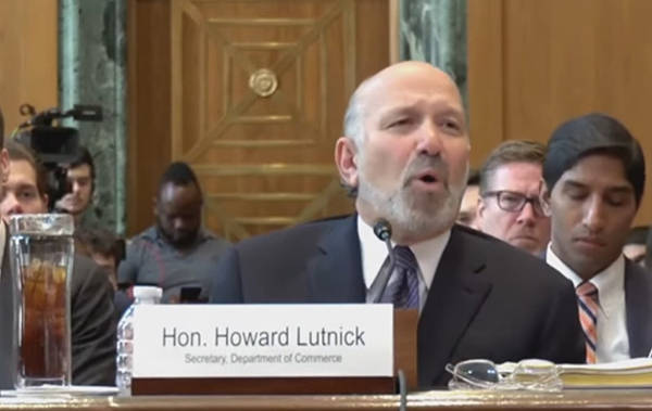 当地时间6月4日,卢特尼克在参议院拨款委员会的听证会上发言。视频截图