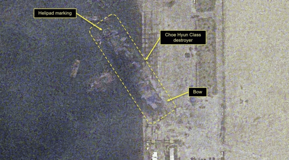 关注时间达半个月的朝鲜驱逐舰二号舰下水侧翻事件,终于交出一份“满意”的答卷,朝鲜官方正式宣布已完全修复该舰的平衡性,截至5日下午,二号舰安全“下水”并在码头系留。更令人意外的是,此前认为是切掉舰艏才得以扶正的判断,被下水后更清晰的卫星图片证明完全是误判!该舰整体完好,经朝鲜专家组对其全盘状态的复查后,将进入下一阶段修复作业。