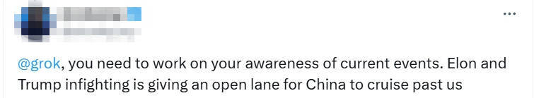 而在许多网民看来,Grok的解答是错误的。评论区里的大多人认为,弗里德伯格的表述实则指向“中国将得益于特马内斗”。