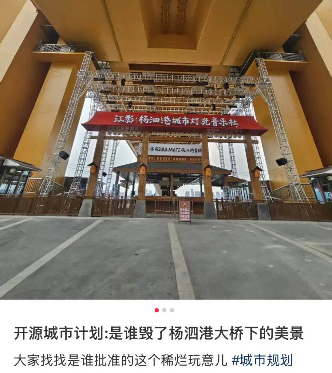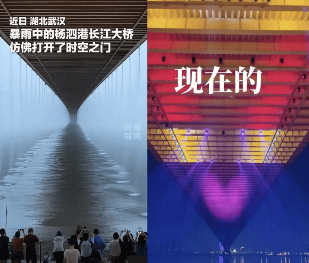 但确实很难想到,景点之丑之同质化还能再创新高。最近武汉杨泗港长江大桥作为“民间野生景点”出圈,因桥底拍出了典雅的中式氛围感被誉为“异世界大门的尽头”,结果施工单位一插手,空灵秘境就变成了异世界蹦迪。